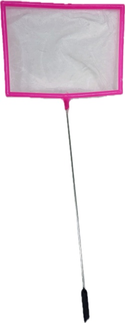 網はマイクロネットで、縦約10.5㎝・横約14.5㎝、柄の長さは約26.5㎝のベーシックなすくいあみです。